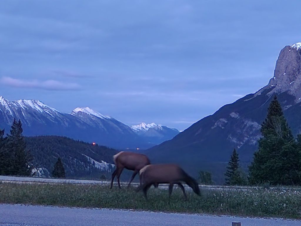 Hit the road about 5pm, which was a really late start for us, and arrived at Banff National Park about 10pm mountain time. On the way, we stopped for gas and food at “Crust and Curry” which was the best Indian food I’ve ever had + a cheese pizza for the kids. The view at our site was incredible and there were even some elk were hanging around our campsite. The kids ran around with glowsticks before crashing after a long day. Jasper and the Icefields Parkway tomorrow.