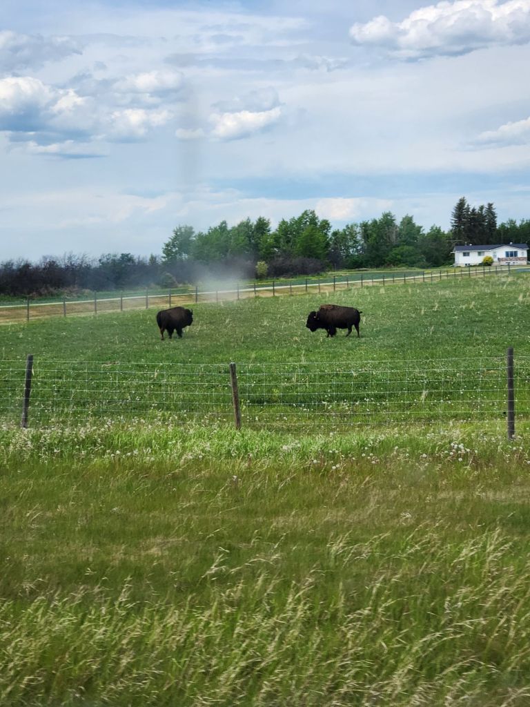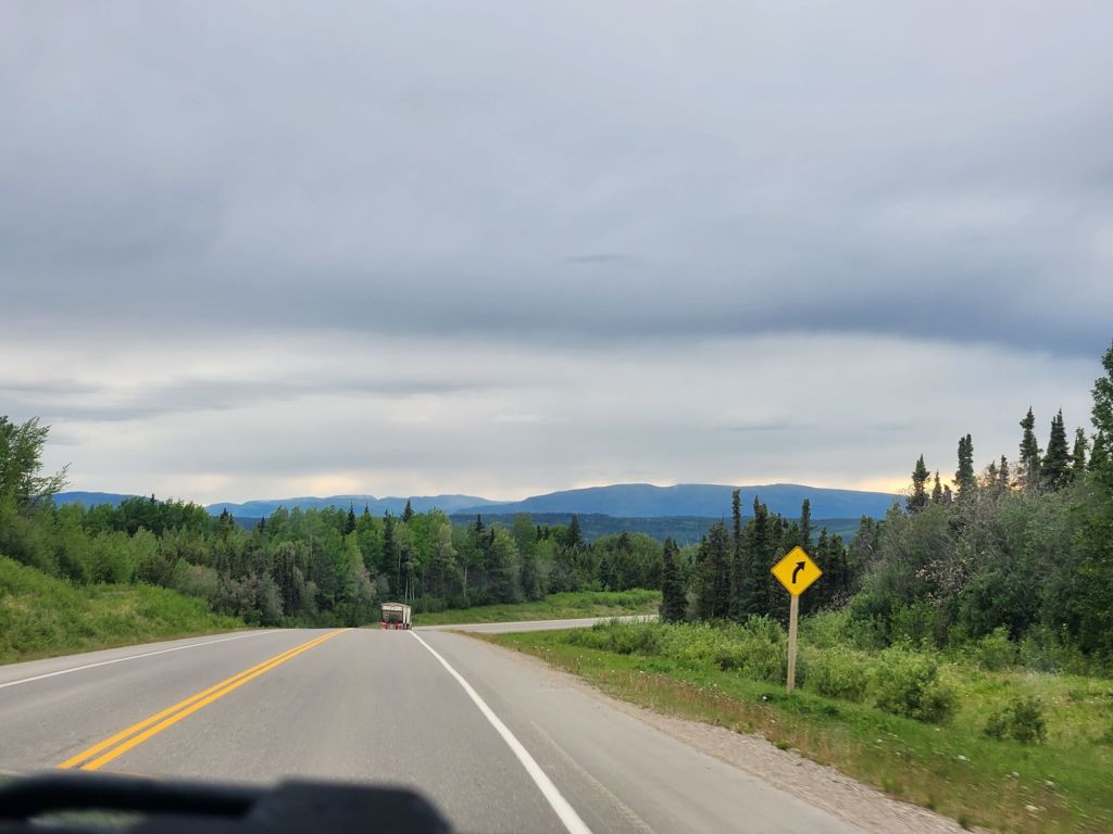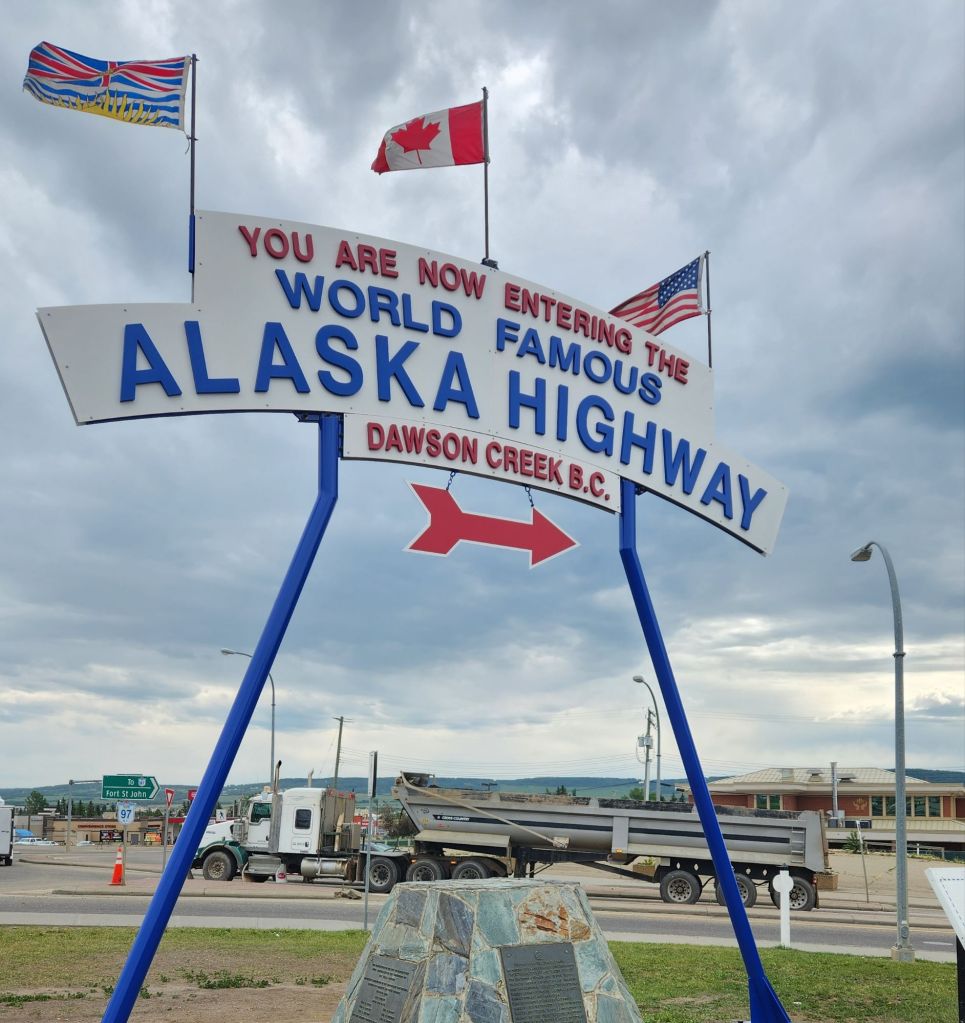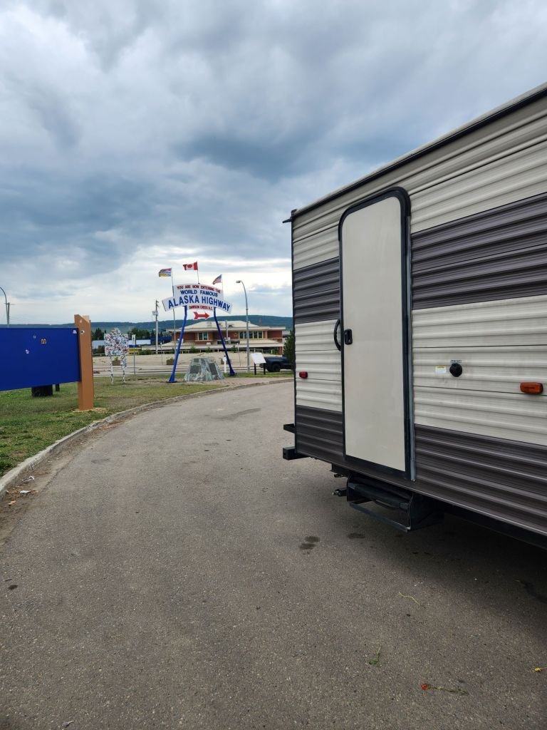 Left our site at Grand Prairie and searched for a replacement mate for our lonely hitch bracket. Saw some non-yellowstone/free bison 🦬 and got some loaded fries from a Mexican cantina/fried chicken place that was amazing. Stopped by the historic mile post “0” of the ALCAN (Alaskan Canadian Highway) for photos. Crazy we’ve been so far and still have so far to go. Decided that the truck deserves a metal for all it’s going through on this trip. We could feed a small rat army with the snacks on the floor. Made it to our campsite at Pink Mountain, which left a bit to be desired, but it was fine for one night. Side note, the power plug for the camper is directly below the water hookup. I feel like that’s a terrible design… headed to Northern Rockies Campground and Muncho lake next!
