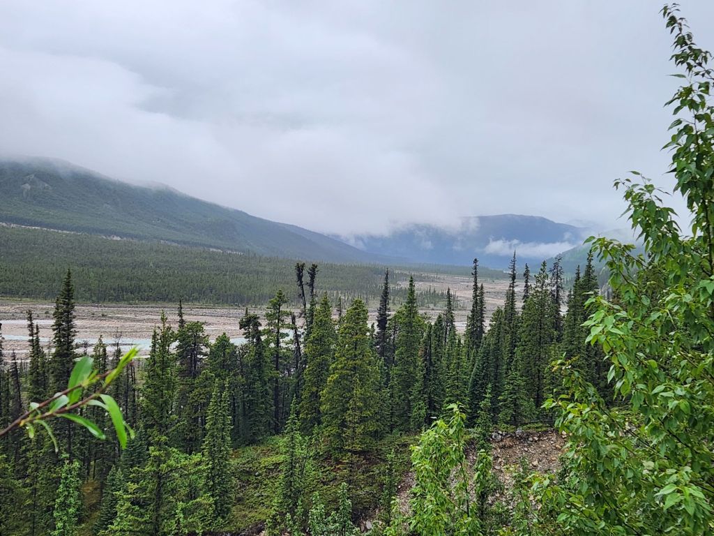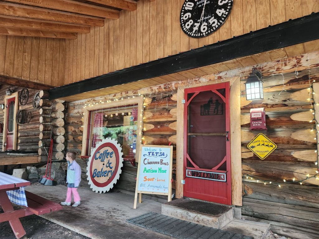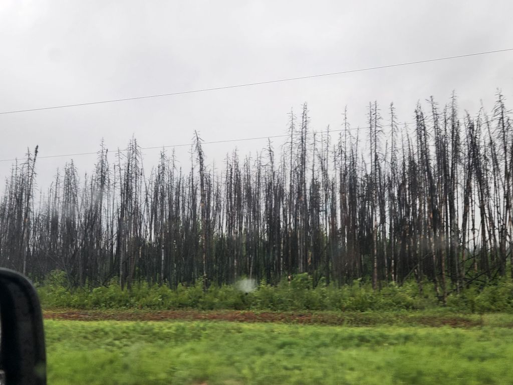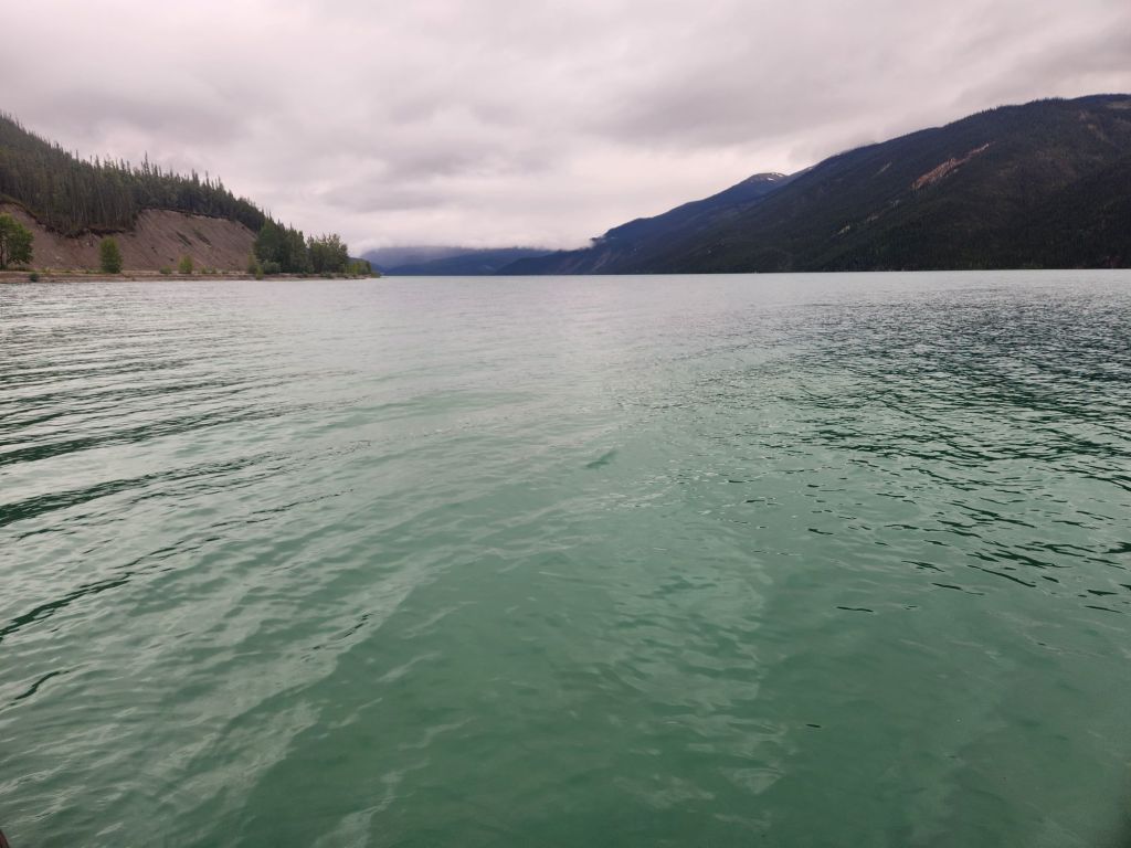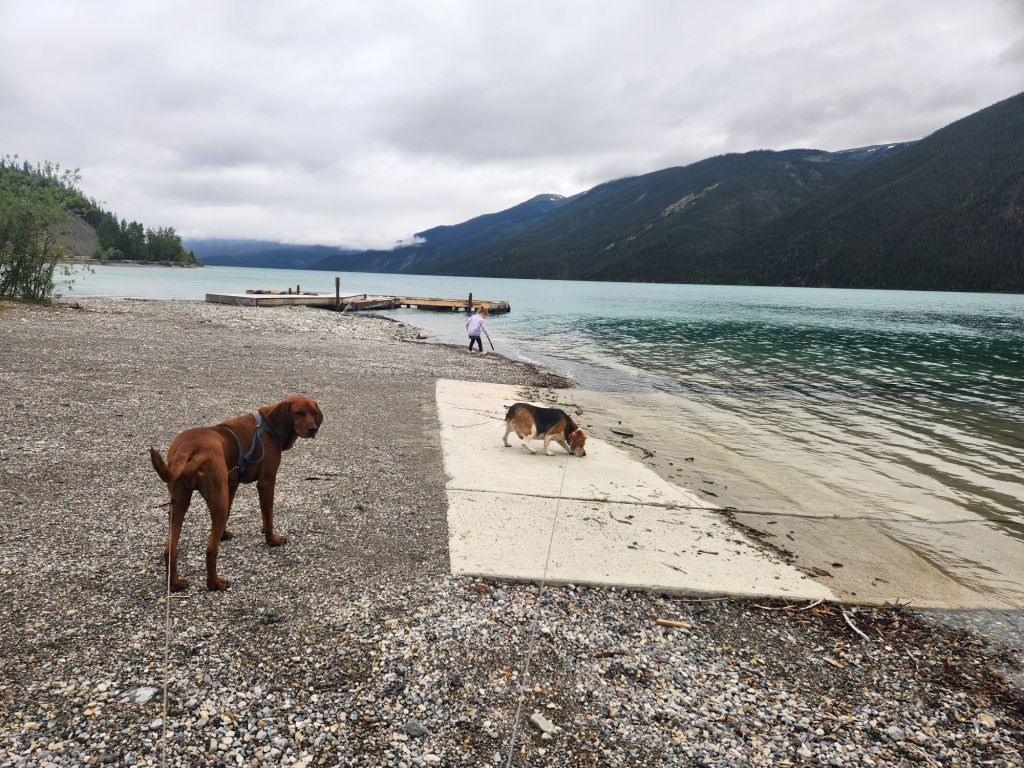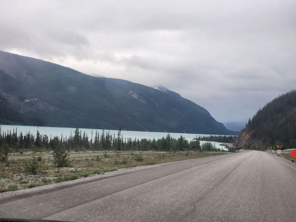 Super rainy Sunday as we made our way to Muncho Lake. The smoke from recent wildfires was thick. Lots of burned trees as we passed. Tetsa River Lodge claimed to be the “Cinnamon Bun Center of the Galactic Cluster” so of course we had to stop for one. They were gooey and amazing, in my opinion, Joey wasn’t a huge fan. Stopped for a photo and made our way to Northern Rockies Campground. Our spot was right next to the lake and was beautiful. The water was freezing and we saw someone jump in. The kids had a blast throwing rocks in the water. The campground had a cool little gazebo with a firepit. Joey wants to build one, someday. Liard hotsprings and Watson Lake/Nuggets City are our next stops. -L